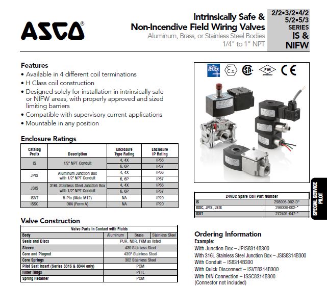 產品名稱:美國ASCO本安防爆電磁閥 -JPIS8551B313(原型號WBIS8551A313停產)