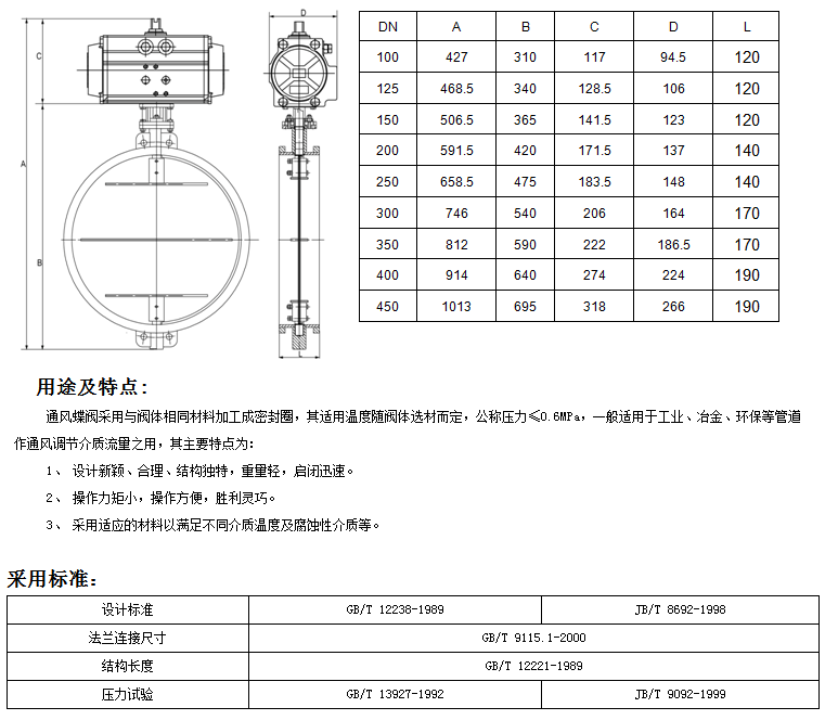 產品名稱:氣動通風蝶閥